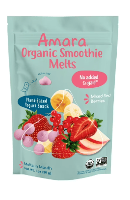 Packaged in a convenient 1 oz resealable bag, these bite-sized melts are perfect for on-the-go snacking, travel, or diaper bags. Made for babies 9 months and older, Amara Smoothie Melts are a smart and delicious way to introduce real fruits and healthy snacking habits.