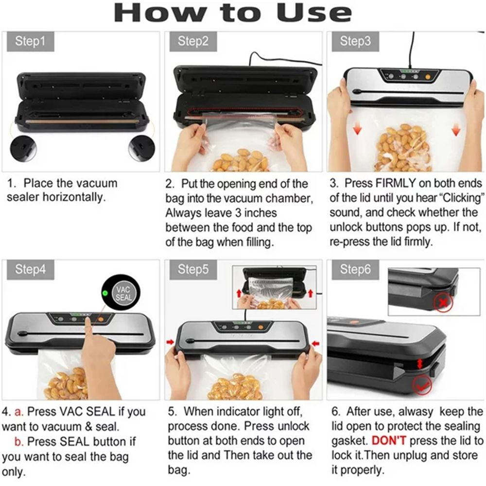 5.This vacuum sealer is aim to keep your meat, vegetables, and leftovers fresh and flavorful, above 10 times longer storage than traditional refrigeration, frozen storage and normal conditions..