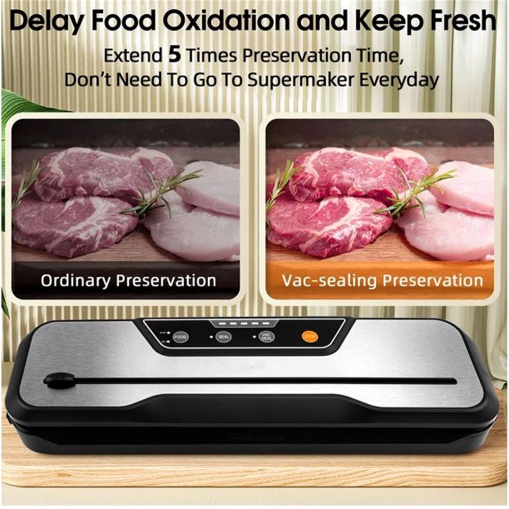 [Extend the freshness time by 10 times] Vacuum sealer can remove the air in the bag and seal it to keep the food fresh and extend its shelf life. The storage time of the vacuum sealers 10 times the normal storage time. The top cooking tool for vacuum sealing of food.