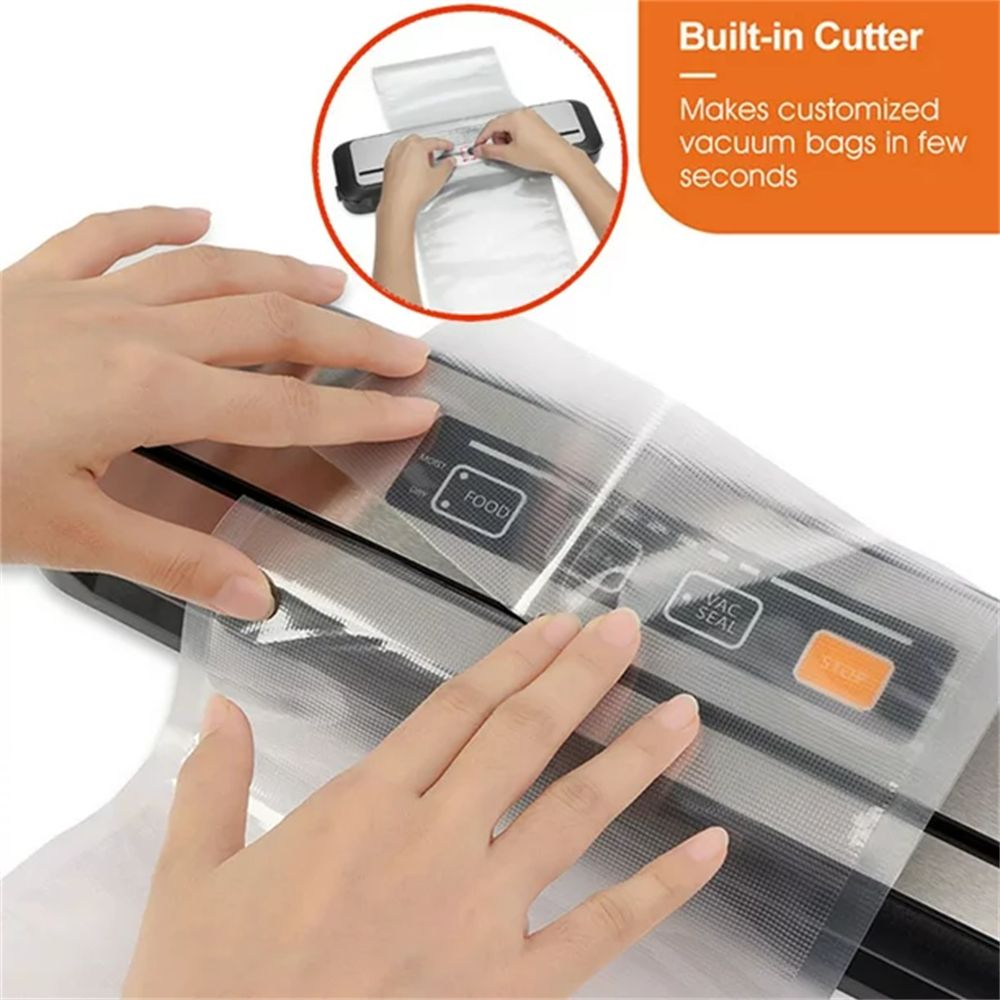 [Built-in cutter] Food vacuum sealer Convenient roll storage and built-in cutter allow you to easily make custom-sized bags to meet your needs without using scissors. Fits 12 inch wide or other packaging vacuum quart bags and rolls. The vacuum sealing machine is small in size and light in weight; easy to store and move