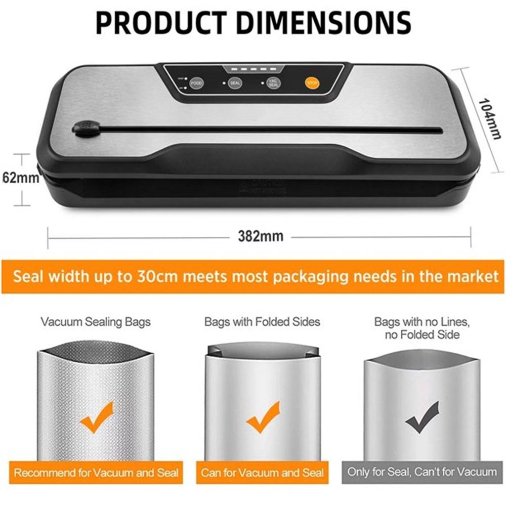 If you want to preserve food for longer time or you are crazy about bulk food purchases and find yourself struggle to divide it up and keep its fresh taste at the same time; vacuum sealer machine absolutely exceed your expectations.Stylish and sleek design making meat sealing machine with roll bags a lot easier to store or even keep on the counter.