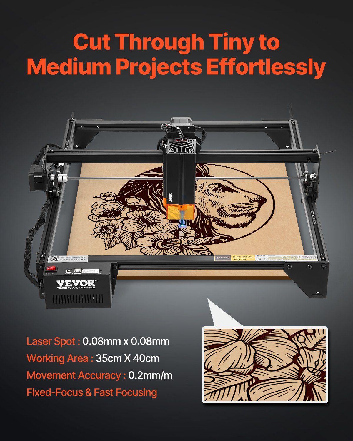 1.Excellent Performance, Reliable Quality: Experience exceptional performance with our laser engraver. With 20W laser power, it effortlessly engraves and cuts over 100 types of materials. Enjoy cutting-edge features like a maximum 5 mm wood cutting capacity, a laser head lifespan of over 10,000 hours(at 80% power), and a spacious 350 x 400 mm engraving area. Ideal for both commercial and personal DIY use. Laser Class: class ÃŽâ„¢V, Power Output: 10000mW