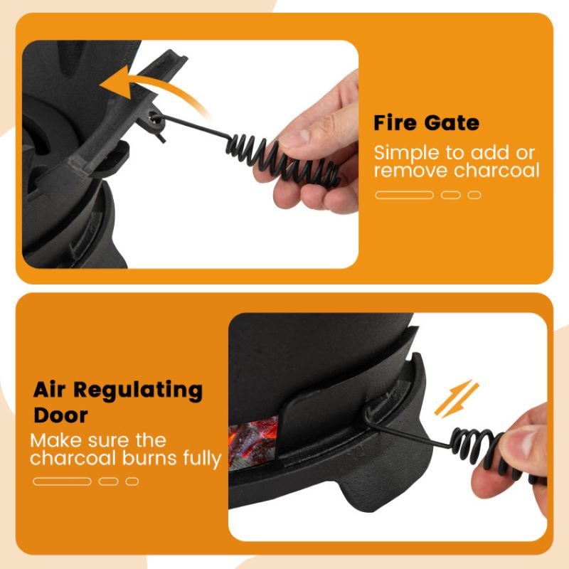 3.With a temperature control vent and coal door, this tabletop camping grill allows you to easily adjust airflow.