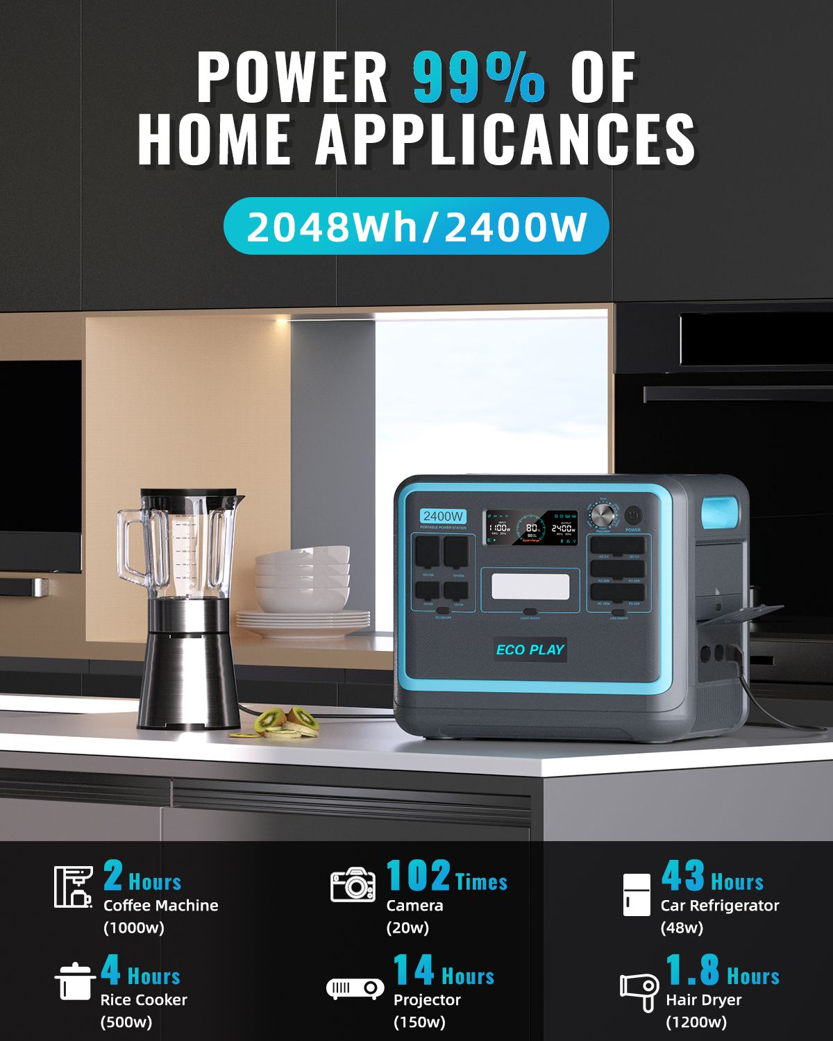 .✅ Note: The Ecoplay power station is the lightest and safest 2400W portable power station in the market. Weighs only 48 lbs.✅