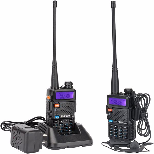 UV-5R Ham Radio Long Range UV 5R Two Way Radio Dual Band 5W Walkie Talkie Handheld Rechargeable High Power 1800mAh Li-ion Battery and Earpiece (2pcs)