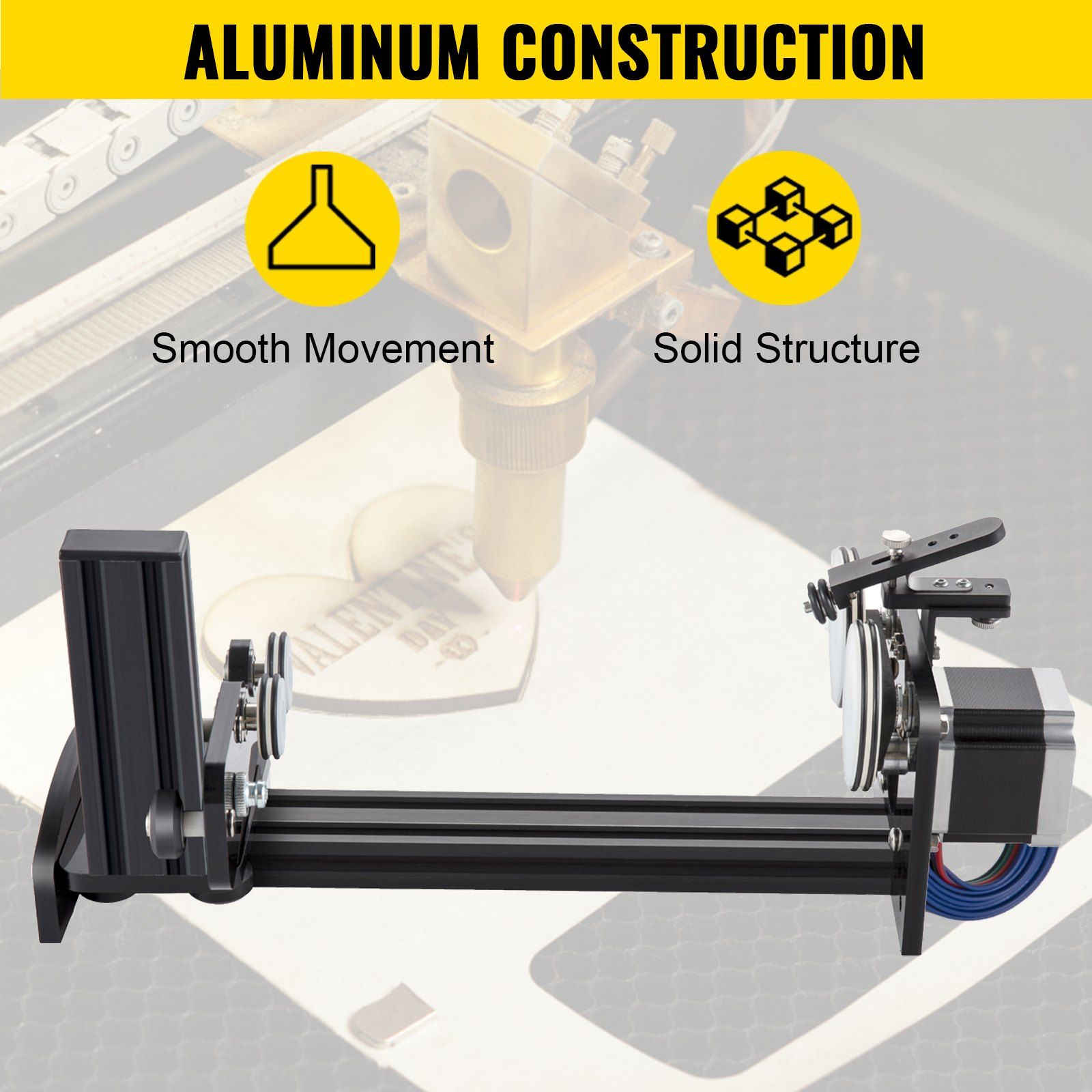 Our laser rotary axis frame is made of high-quality aluminum material, which is strong, wearable, and can provide a long-time service.